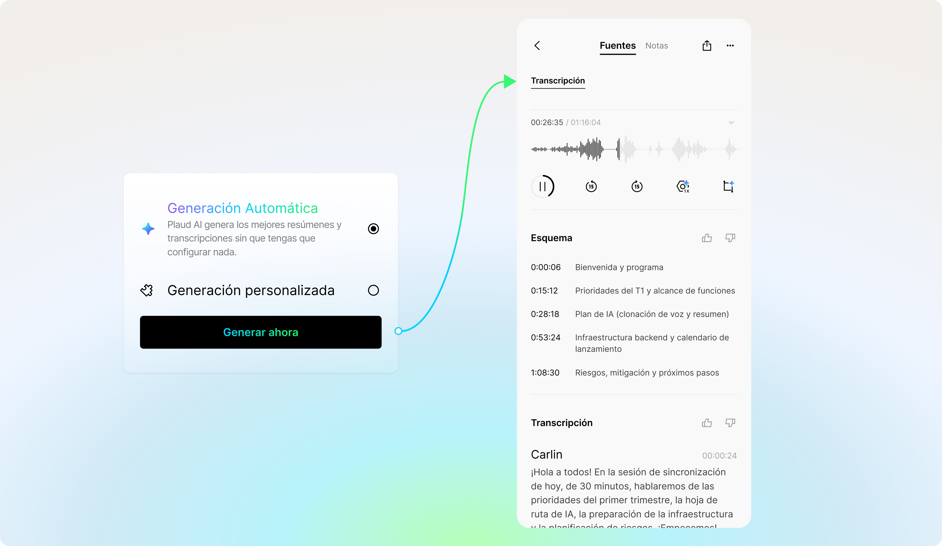 Automatiza tu flujo de trabajo para ser más eficiente Configura AutoFlow una vez y deja que se encargue del trabajo duro. Se encarga automáticamente de la transcripción, el resumen y la entrega, por lo que facilita enormemente el trabajo y lo hace más rápido y fiable.