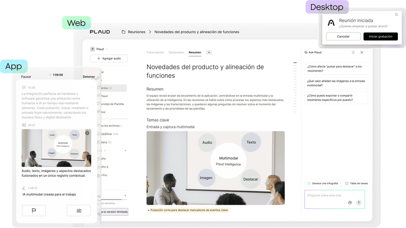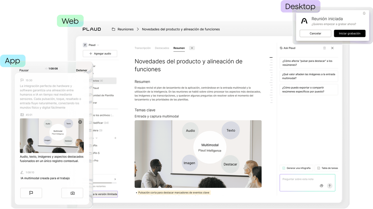Un solo botón para grabar reuniones, llamadas, entrevistas y todas las conversaciones importantes.